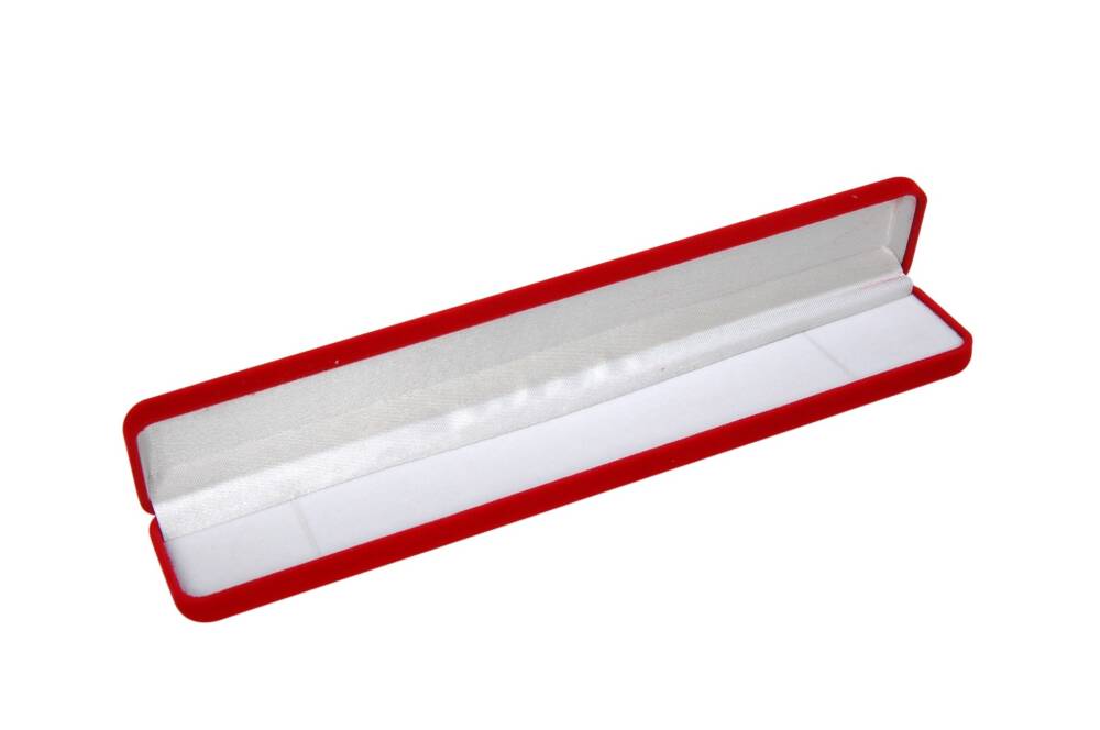 İnce Bileklik Kutusu - Paketi 12 adet Malzeme: Yumuşak dokulu, kaliteli kadife kaplamaBoyut: 21 x 4 cm İç Tasarım: Beyaz kumaş kaplamalı, şık ve koruyucu iç yüzeyKullanım Alanı: Bileklik, tesbih gibi ürünler için zarif bir saklama ve sunum çözümüRenk: KırmızıBilekliklerinizi şık bir şekilde sergilemek ve güvenle saklamak için mükemmel bir seçim!