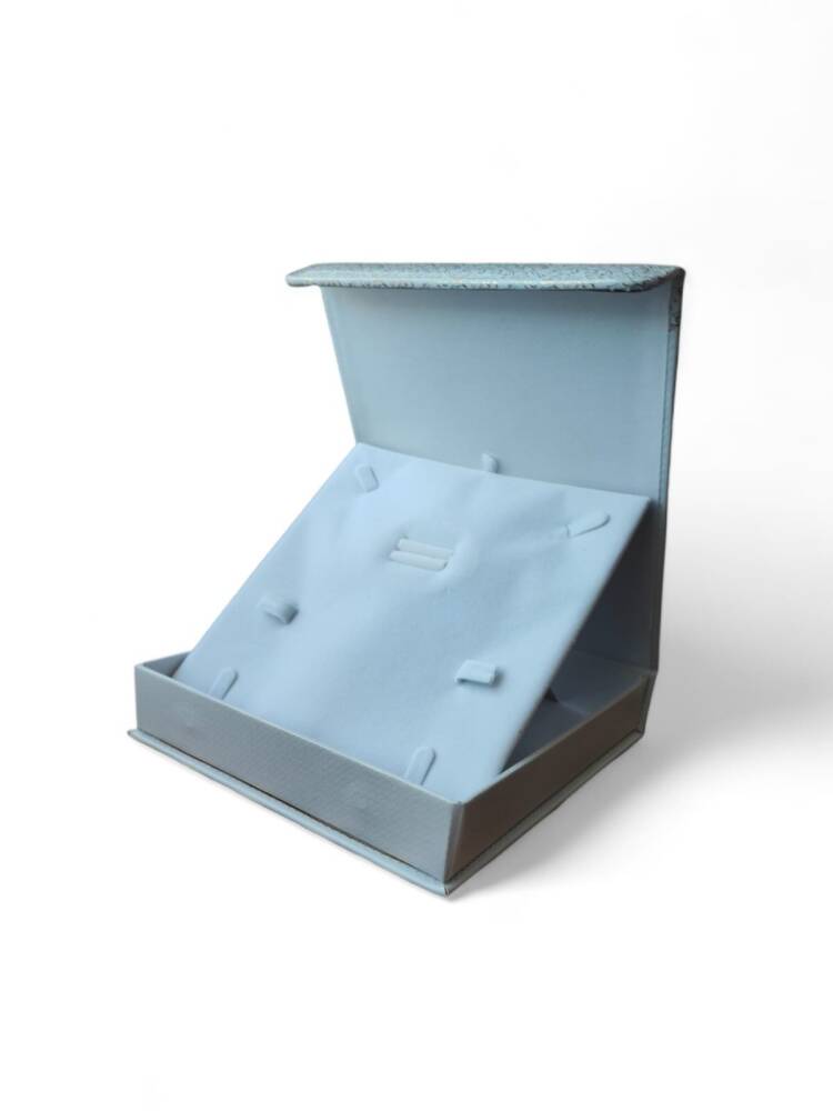 Mıknatıslı Deri Set Kutusu, zarafet ve fonksiyonelliği bir arada sunan lüks bir takı kutusudur. Deri dokulu dış yüzeyi, özel desenli kenar detayları ve mıknatıslı kapak sistemiyle hem estetik hem de dayanıklı bir sunum çözümü sağlar. İç kısmı, gerdanlık ve bileklik gibi takı setlerini güvenle sabitleyebileceğiniz özel bölmelerle tasarlanmıştır. Kutunun yumuşak yüzeyi takılarınıza zarar vermez, şık duruşu ise markanızın kalitesini yansıtır.